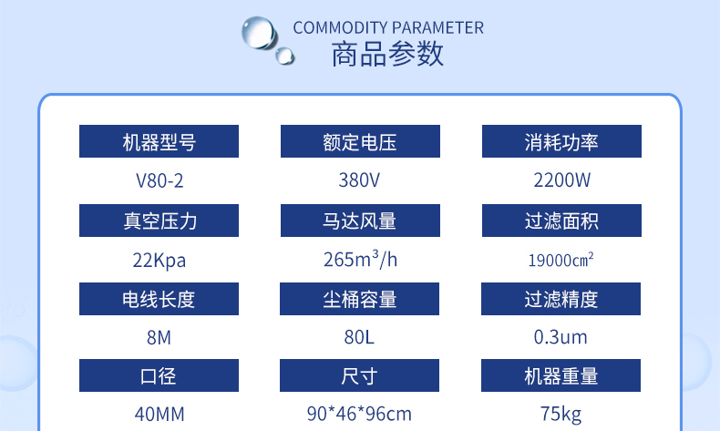 l 耐潔思V80-2是一款工業(yè)吸塵器,機(jī)器具有漏電,缺相、過(guò)熱及過(guò)載保護(hù)裝置,小型的體積適用于工作區(qū)域狹小有不斷有灰塵產(chǎn)生的場(chǎng)所,可固定安裝在大型設(shè)備上作為固定吸塵裝置。適用于各類(lèi)型清理工作非常繁重的工廠。